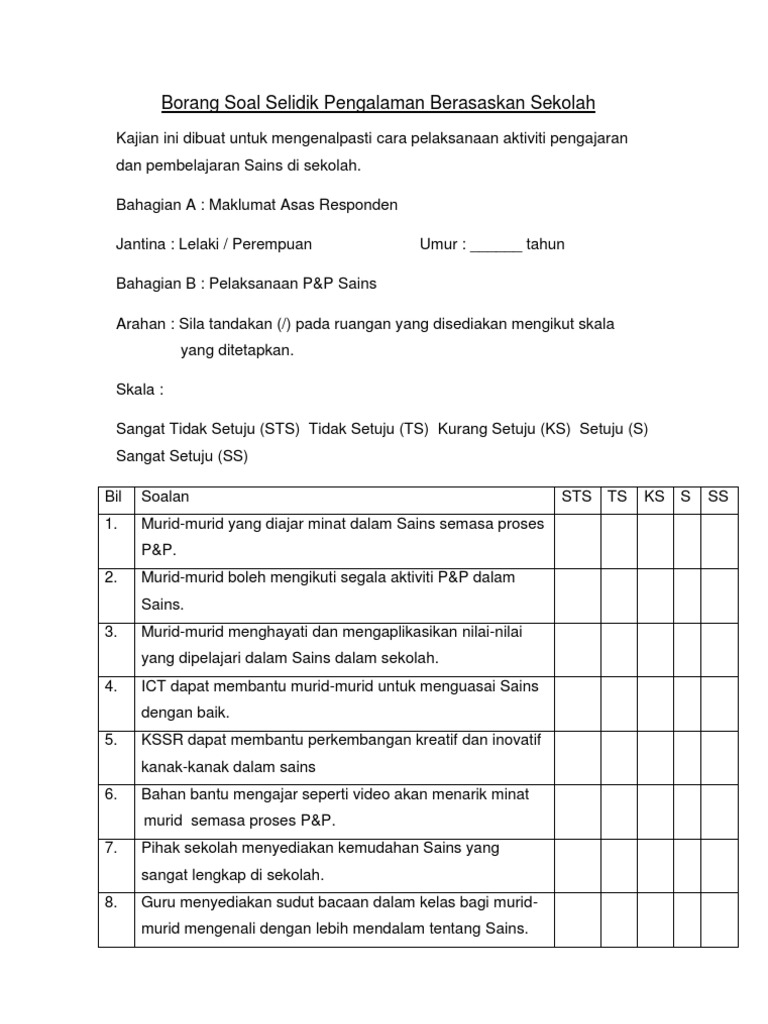 Top Pdf Contoh Borang Soal Selidik Persepsi 123dok Com