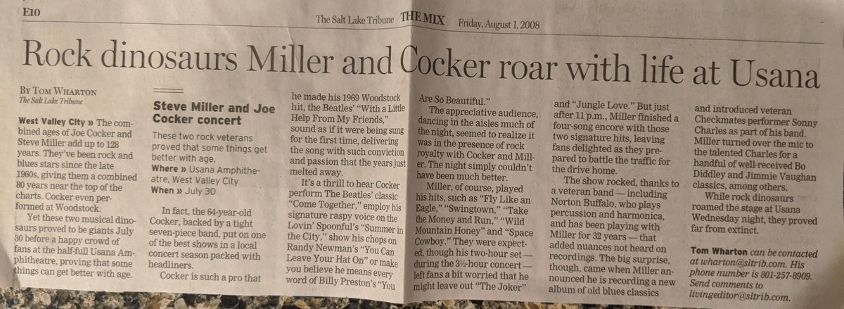 Jul 30 2008 Joe Cocker Steve Miller Band At Usana Amphitheatre West Valley City Utah United States Concert Archives